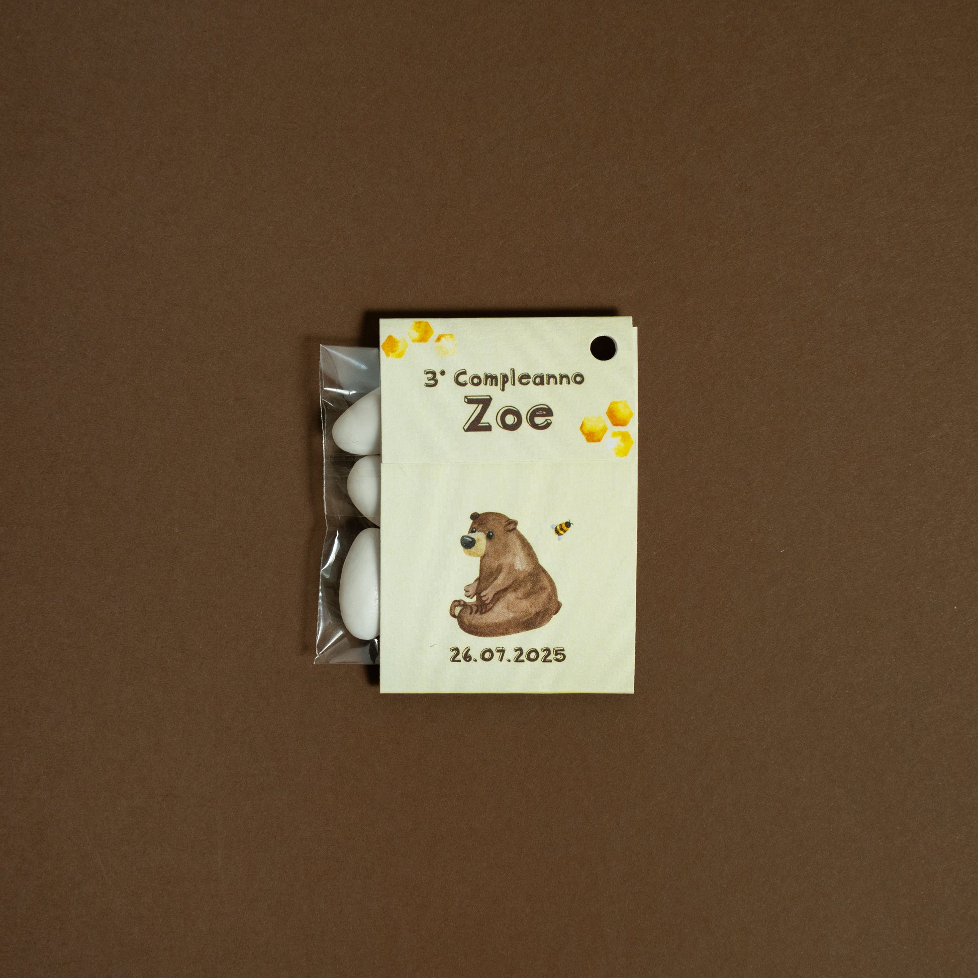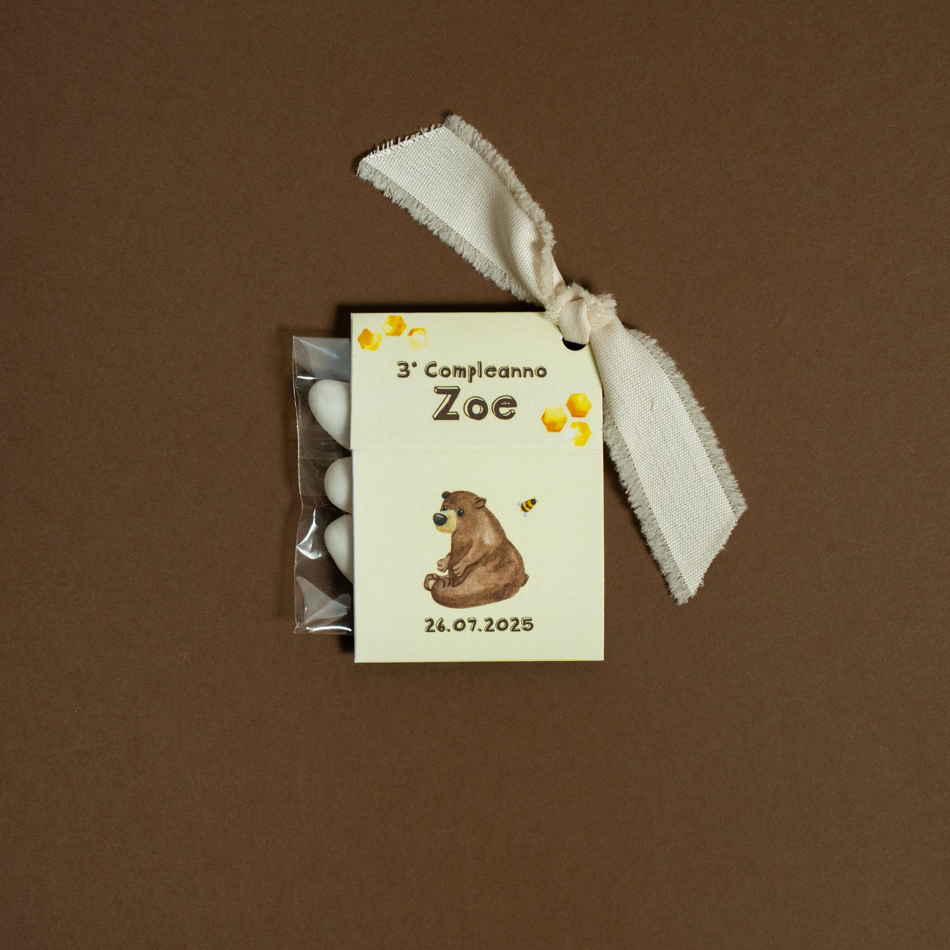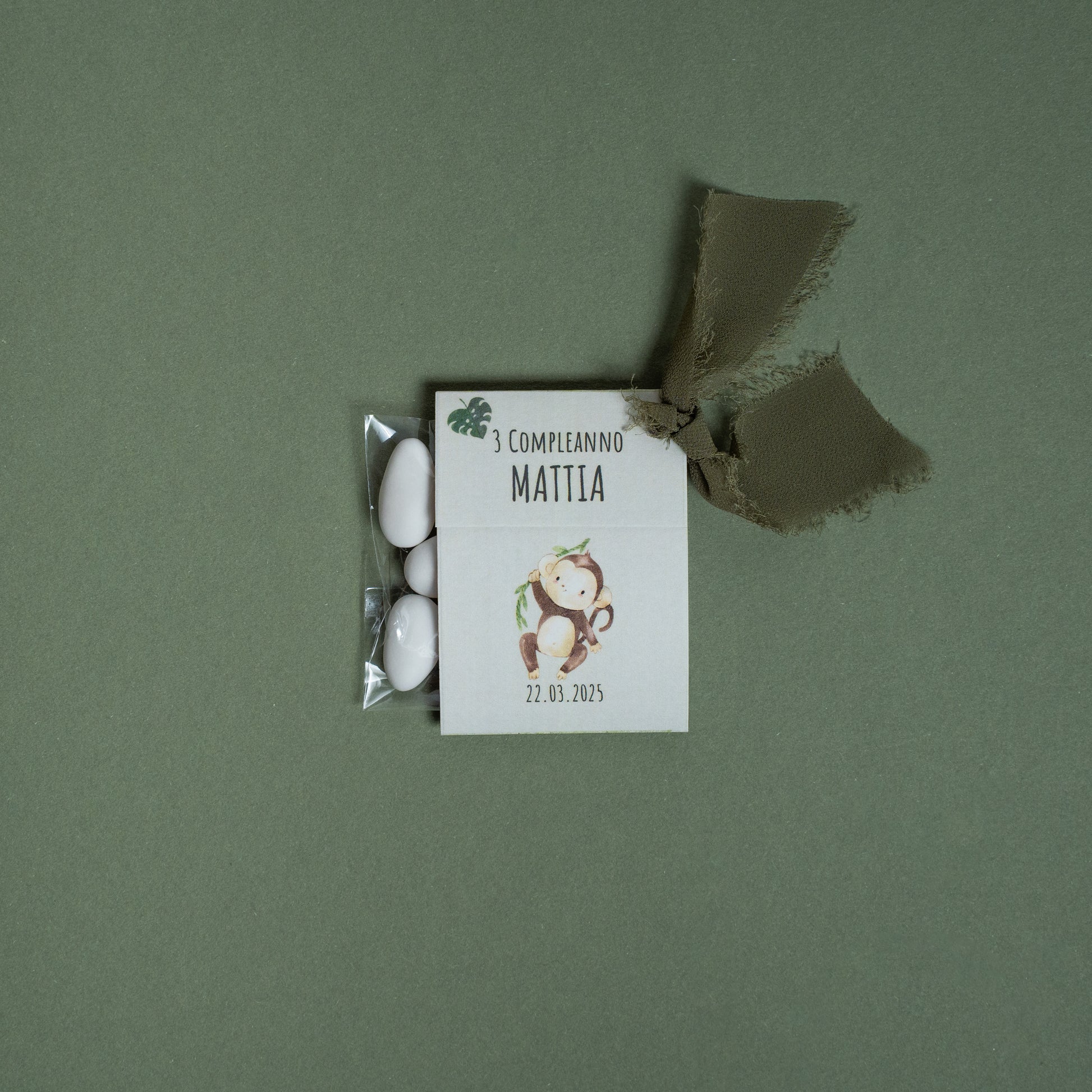 Realizzata in cartoncino stampato a tema, la confezione è prepiegata e personalizzata con il nome e i dati della celebrazione, per un risultato armonioso e coordinato con lo stile dell’evento.