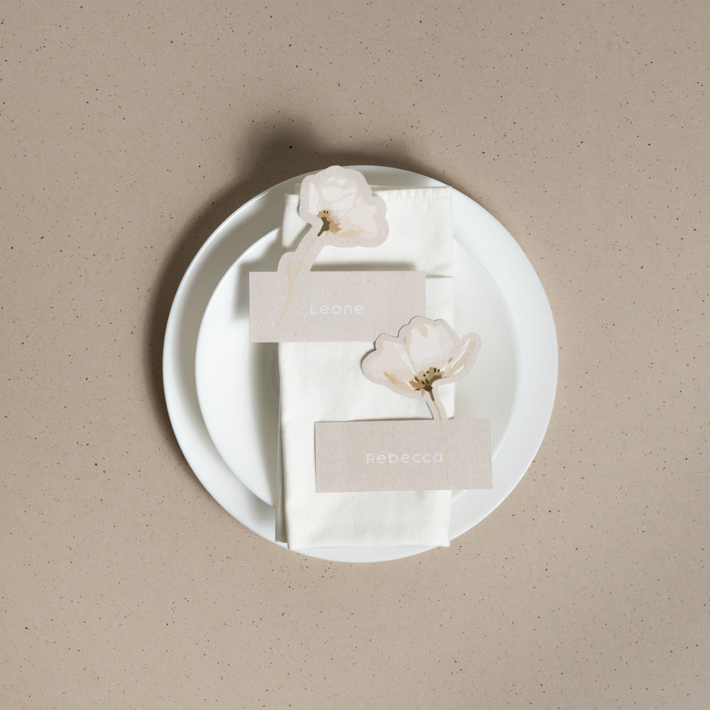 Delicato segnaposto sagomato, realizzato in cartoncino e rifinito con una sagoma ispirata al tema dell’evento. Pensato per essere posizionato sopra al tovagliolo o direttamente sul piatto, aggiunge un tocco originale e curato alla tua tavola.